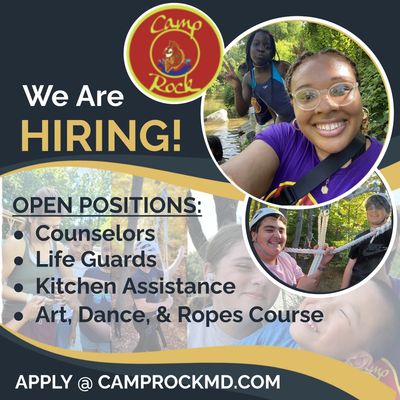 All employee candidates must complete and apply for employment and submit a pastor's recommendation. Please click here for an employment application. Applications can be emailed to office@camprockmd.com